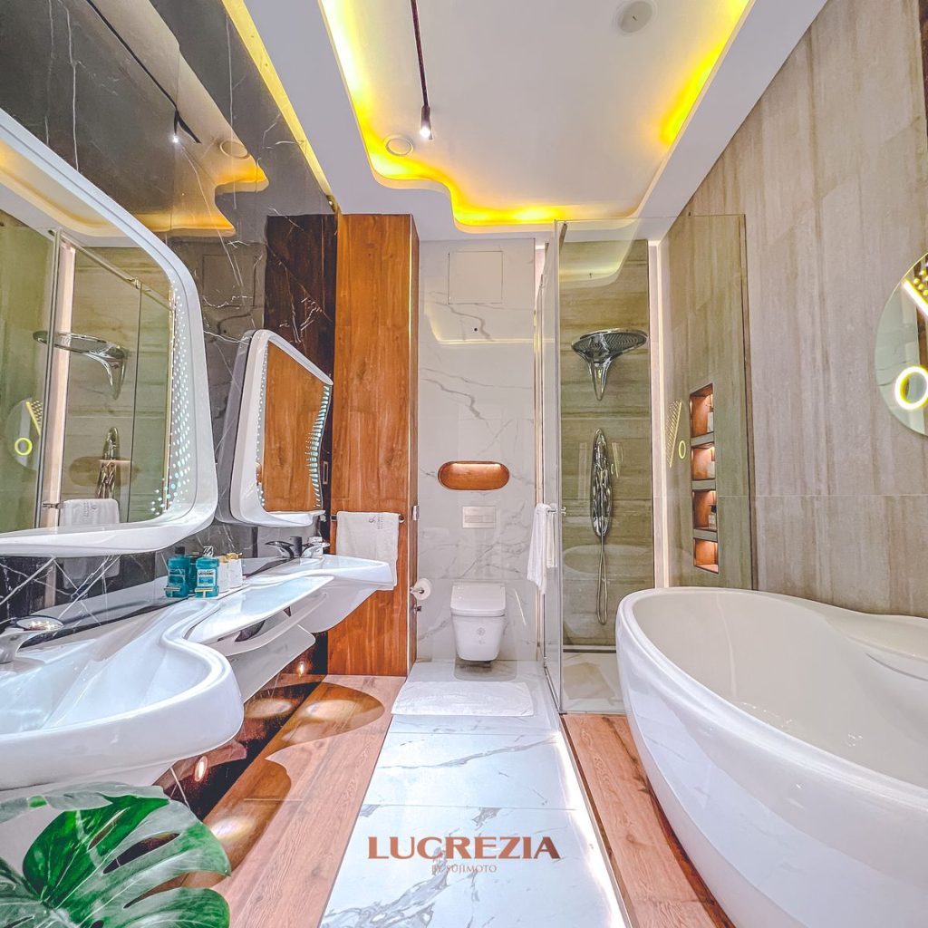 This approach sharply distinguishes Lucrezia from other high-end residential developments in Ikoyi and beyond. From premium towers on Banana Island to global benchmarks such as One Hyde Park in London or branded residences in Dubai. They are spatial experiences. Curves replace corners. Surfaces flow seamlessly into one another. Everyday rituals—water, light, reflection—are choreographed into something closer to sculpture than utility.